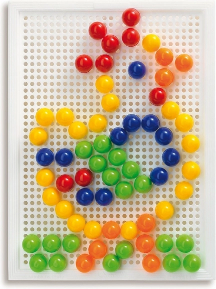 Quercetti Fanta Color mozaika podporuje deti v rozvoji jemnej motoriky a kreatívneho myslenia prostredníctvom tvorivého hrania.