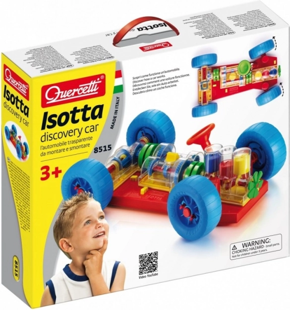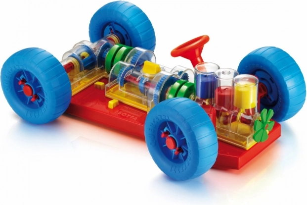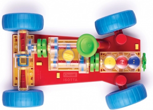 Dômyselná hračka, ktorá priamo nabáda deti aj ich rodičov zistiť, ako funguje skutočné auto. Všetky základné mechanické funkcie sú tu presne reprodukované. Pri motore deti uvidia, ako pracujú valce a kľukový hriadeľ a ako sú spojené s prevodovkou, ktorá má funkčné radenie s 3 polohami (neutrál, 1. a 2. stupeň). Diferenciál prenáša pohyb na zadné kolesá a umožňuje ich nezávislé otáčanie. Všetky mechanické časti možno ľahko pripojiť k podvozku a rovnako ich možno uvoľniť špeciálnymi odpruženými žltými tlačidlami. Volant funguje a umožňuje autu zatáčať alebo zájsť na parkovisko. Deti môžu auto vpredu aj vzadu zdvihnúť pomocou špeciálnych vozíkov a otáčaním kľuky na tom prednom uvádzať celý mechanizmus do pohybu. Pri radení jednotlivých rýchlostných stupňov uvidia, ako sa bude meniť rýchlosť pohybu kolies a valcov. Pri zaradení neutrálu si tiež všimnú, ako sa motor a diferenciál navzájom odpoja. Určené deťom od 3 rokov. Hlavné vlastnosti: základné mechanické funkcie sú reprodukované, funkčný volant a mechanické časti, pre deti od 3 rokov