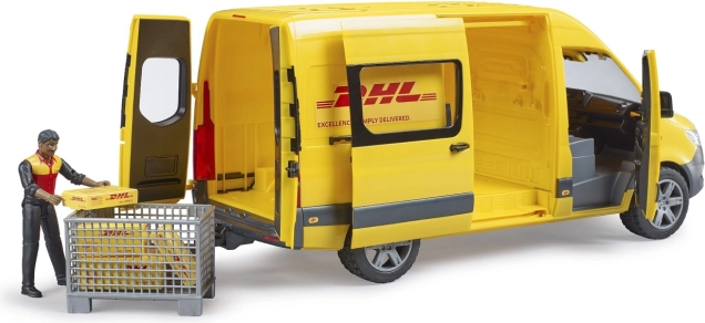Tento Bruder model Mercedes-Benz Sprinter DHL je vybavený realistickými posuvnými dverami a priestranným interiérom. Dodávka je doplnená figúrkou vodiča a príslušenstvom, ako sú palety a balíky. Hra sa stáva zábavnejšou s otvárateľnými bočnými a zadnými dverami, vďaka čomu je model ideálny pre role-play scenáre doručovania balíkov. Rozmerný nákladový priestor umožňuje bezpečné uloženie všetkých potrebných vecí pre doručenie. Skvelá zábava pre deti od 4 rokov.