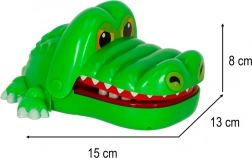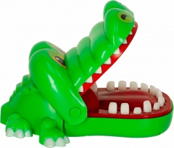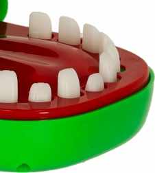 Táto obľúbená hra s krokodílom má v tlame 13 zúbkov, ktoré možno postupne stláčať. Vždy je len jeden „boľavý“ zub, ktorý je vyberaný náhodne pri každom otvorení tlamy – vďaka tomu je hra nepredvídateľná a stále zábavná. Zuby nie sú ostré a zaklapnutie je jemné, takže hranie je bezpečné aj pre menšie deti.
