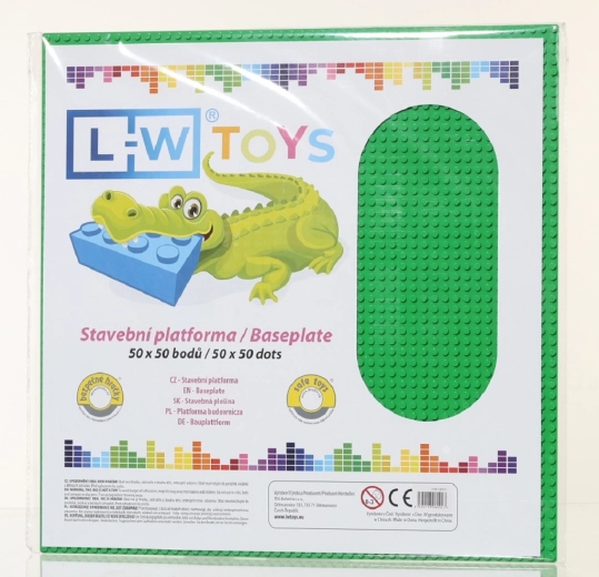 Veľká zelená podložka na stavanie s rozmermi 50x50 bodov poskytne vašim stavebným projektom pevný základ. Kompatibilná s LEGO a L-W Toys, je to nevyhnutný doplnok pre každého malého staviteľa.