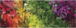 Fascinujúci návrh záhrady s kvetinami a listami v dúhových odtieňoch ponúka krásnu dekoratívnu schopnosť.