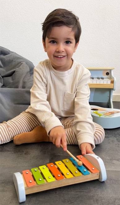 Vďaka príjemnému farebnému prevedeniu je xylofón skvelým vizuálnym doplnkom detského orchestra. Hra na xylofón prirodzene podporuje sluchové vnímanie, koordináciu oko–ruka a rozvoj hudobného citu.