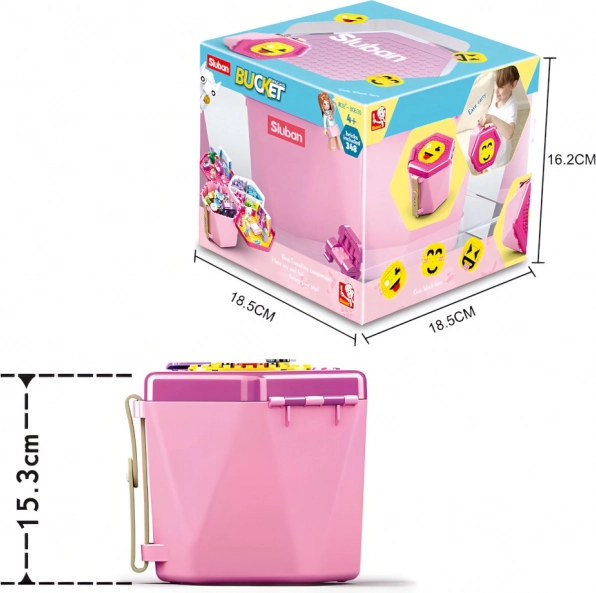 Stavebnica Sluban v ružovom vedre prináša hodiny zábavy a rozvoja fantázie. Prenosné balenie s vekom – stavebnou podložkou – umožní stavať kedykoľvek a kdekoľvek. Vďaka nízkej náročnosti je ideálna pre deti od 4 rokov a vďaka kompatibilite s LEGO, COBI a MEGA BLOKS ľahko rozšírite svoju zbierku.