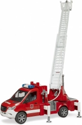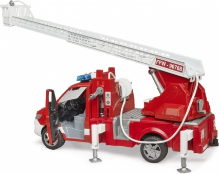 Rebrík je výsuvný a umožňuje otáčanie, zatiaľ čo stabilizačné nohy zaisťujú bezpečnosť pri hre. Vozidlo disponuje otvorenou skriňou, ktorá môže slúžiť na úschovu doplnkového hasičského vybavenia. Kabína je kompatibilná s figúrkami z kolekcie BRUDER BWORLD.