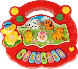 Piano prehráva škálu tónov, melódie a zvuky zvierat.