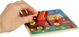 Drevené puzzle s motívom hasičského auta je ideálne pre malé deti, ktoré sa chcú naučiť koordinácii a logickému mysleniu. Tento farebný a zábavný produkt podporuje rozvoj jemnej motoriky.