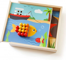 Drevená mozaika Pláž BIGJIGS TOYS prináša deťom kreatívne skladanie s pestrými kolíkmi. Umiestňujte ich podľa predlôh alebo vlastnej fantázie a vytvárajte veselé plážové motívy. Vďaka kompaktnému boxu, ktorý slúži aj ako podložka, je hračka vždy prehľadne uložená a pripravená kedykoľvek na použitie.