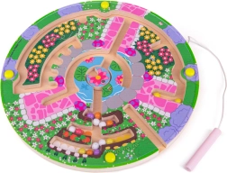 Toto kruhové drevené bludisko s pestrou záhradnou grafikou ponúka deťom intuitívnu a pútavú hru. Priložené magnetické ukazovadlo vedie guľôčky cez cestičky a prekážky, čo prirodzene podporuje koncentráciu, presnosť pohybov a rozvoj logického myslenia.