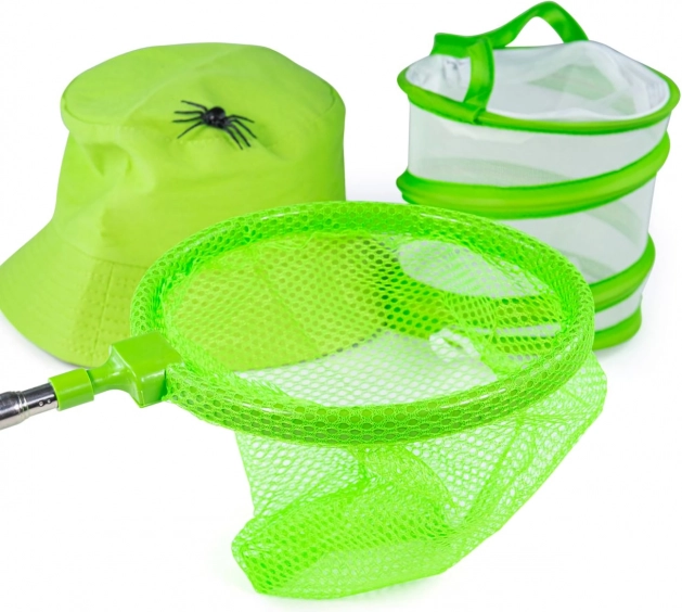 - Kompletná výbava: sieťka, taška, nádobka na úlovky, klieštiky, lupa, ďalekohľad a klobúčik.