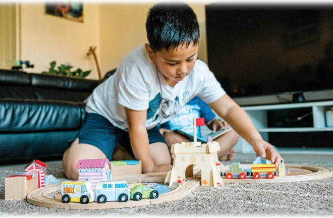 Vydajte sa na slnečné pobrežie s touto tematickou drevenou vláčkodráhou a učte deti, ako správne starať sa o prírodu. Set ponúka 70 dielov vrátane 3-dielneho vláčika, autíčok, pieskového hradu s priejazdom a plážových domčekov. Nechýbajú magnetické výukové dosky na triedenie odpadu, ktoré podporujú jemnú motoriku, poznávacie zručnosti a udržateľný prístup k hre.