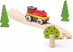 Rozbehnite svoju drevenú vláčkodráhu s elektrickou lokomotívou od Bigjigs Rail. Vďaka batériovému pohonu sviští po koľajniciach, ľahko ťahá vagóniky cez magnetické spriahadlá a vďaka gumovým návlekom na kolesách má plynulý záber bez preklzu. Pevné a odolné prevedenie v atraktívnej červenej farbe a kompatibilita s väčšinou vláčkodráh zaručia hodiny kreatívnej hry.
