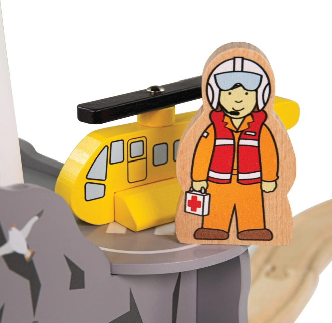 Obohaťte detskú vláčikodráhu o pobrežnú scenériu s majákom a heliportom. Táto drevená súprava ponúka štvorcestný tunel, maják, helikoptéru a 2 figúrky pre nekonečné príbehy a záchranné misie. Vyniká robustným spracovaním, je kompatibilná s väčšinou drevených vláčikodrâh a je vyrobená z zodpovedne získaného dreva s nezávadnými farbami.