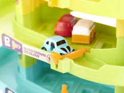 Objavte multifunkčnú parkovaciu garáž, ktorá premení detskú izbu na rušné mesto. Štyri priestranné poschodia ponúknu veľa miesta na parkovanie, výťah vyvezie autíčka až na vrchol a nechýba ani heliport pre obľúbený vrtuľník. Elektrický režim výťahu dopĺňajú veselé svetlá a melódie, v prípade potreby možno výťah ovládať ručne.