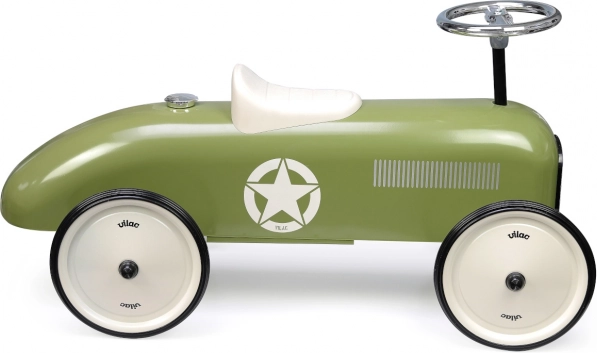 Odrážadlo Vilac Vintage v khaki farbe vás vtiahne do elegantnej éry 30. rokov. Jeho odolná kovová karoséria s aerodynamickými tvarmi a detailmi čelnej masky dodávajú výrobku unikátny vzhľad. Polohu pevného, ale pohodlného plastového sedadla možno nastaviť pre maximálny komfort dieťaťa.
