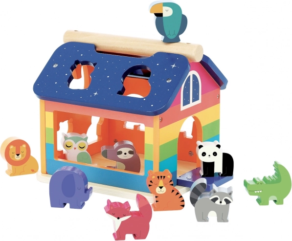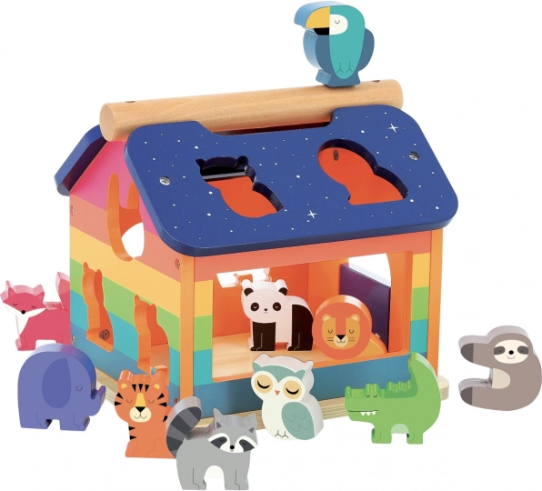 Vilac vkladačka domček dúha je ideálna hračka pre malé deti. Pomocou rozmanitých pestrých figúrok môžu deti správnym pomenovaním a priraďovaním jednotlivých vlastností rozvíjať svoje poznávacie zručnosti a fantáziu. Domček má otvárateľné dvierka, ktoré sú pružne zavesené, takže nehrozí privretie detských prštekov. Súčasťou domčeka je praktická rukoväť na streche, ktorá umožňuje ľahkú manipuláciu a prenášanie.