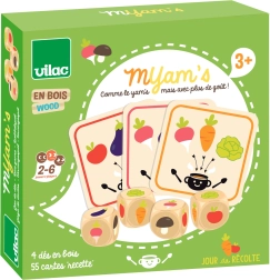 Zábavná rodinná kocková hra Vilac – Deň zberu pozýva deti od 3 rokov k rýchlemu hádzaniu a zbieraniu receptov. Sada obsahuje 55 hracích kariet a 4 kocky, hrá sa v počte 2–6 hráčov. Jednoduché pravidlá, krásne spracovanie a obrázky zeleniny podporujú počítanie, sústredenie a postreh.