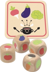 V tejto pôvabnej detskej kockovej hre sa snažíte pomocou hodov vytvoriť kombinácie, ktoré zodpovedajú kartičkám receptov. Každý ťah máte až tri hody – po prvom si môžete ponechať vybrané kocky a skúsiť vylepšiť zostavu. Kto ako prvý nazbiera 10 receptov, víťazí.