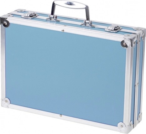 Kovovo-plastový kufrík s pevným držadlom a západkami udrží všetko bezpečne pokope. Ľahko sa prenáša do školy, na krúžok aj na dovolenku.