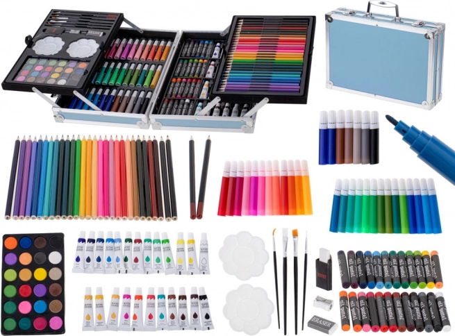 Všetko, čo potrebujete na kreatívne tvorenie, na jednom mieste. Sada kombinuje rôzne techniky – kresbu, kolorovanie aj maľbu. Vďaka bohatej palete farieb ľahko nájdete presný odtieň a môžete naplno vyjadriť svoju predstavivosť. Prenosný kufrík so spoľahlivým držadlom a dvojicou západiek umožní vziať si výtvarné potreby kamkoľvek.