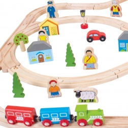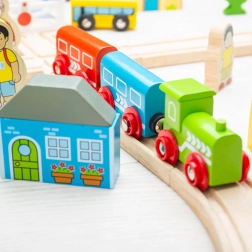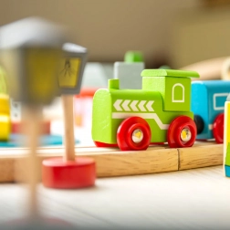 Set je vyrobený z odolného dreva s prvkami z kovu a magnetov na ľahké spájanie vagónikov. Diely sú kompatibilné s väčšinou drevených vláčkodráh na trhu, takže svoju železnicu môžete ďalej rozširovať. Bezpečná konštrukcia a sýte farby podporujú zmyslový rozvoj a jemnú motoriku.