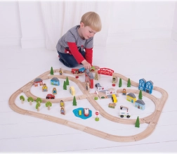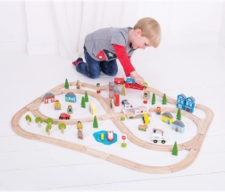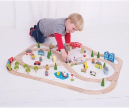 Komplexná mestská aj vidiecka scéna s mostom, priecestím, budovami, stromami a figúrkami poskytne deťom bohatú inšpiráciu na hru a rozvoj fantázie.