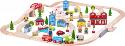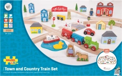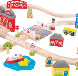 Táto vláčkodráha mesto a dedina prináša deťom bohatý herný svet – prechádzajte rušným mestom, prejdite cez červený most, pokračujte do prírody medzi stromy a domčeky a zastavte pri kostole či na stanici. Autá trpezlivo čakajú na priecestí, zatiaľ čo vláčik dorazí načas – ideálne na tvorbu vlastných príbehov.