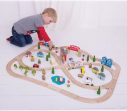 Koľaje a príslušenstvo BIGJIGS RAIL ľahko zapojíte do väčšiny drevených vláčkodráh na trhu – rozširujte svoje mesto aj dedinu bez obmedzení.