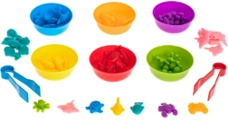 Šesť farebných misiek a 36 figúrok umožní deťom triediť, porovnávať a počítať – skvelý základ pre matematické zručnosti.