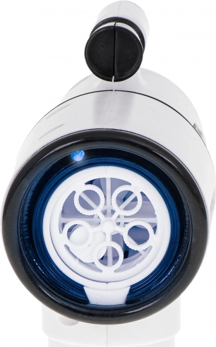 Táto biela pištoľ na bubliny je ideálna pre deti od 3 rokov aj rodinné vonkajšie akcie. Integrovaný ventilátor a systém s 5 krúžkami zabezpečujú plynulé fúkanie a prúd desiatok až stoviek bubliniek na jedno stlačenie spúšte. Pre väčšiu zábavu nechýba LED podsvietenie a zvuky, ktoré možno jedným tlačidlom zapnúť alebo vypnúť.