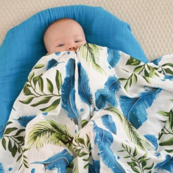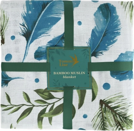 Oblečte svoje bábätko do pohodlia a jemnosti. Táto bambusová mušelínová deka je navrhnutá pre maximálny komfort s krásnym motívom pierok a listov. Vyrobená zo 70% bambusu a 30% bavlny, je ideálna pre horúce dni vďaka svojej priedušnosti a chladivému pocitu.