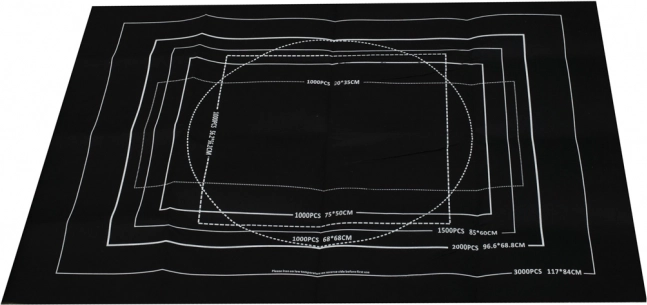 Biele obrysové rámiky na podložke vám ukážu odporúčanú plochu pre 500 až 3000 dielikov, takže vždy viete, koľko miesta budete potrebovať.