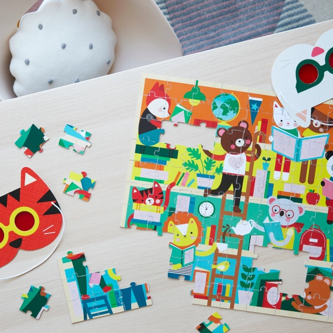 Poskladajte 100-dielne puzzle a zažite kúzlo interaktívneho hrania vďaka 3D okuliarom, ktoré odhaľujú skryté detaily. Roztomilé zvieratká zápasia s neporiadkom v knižnici a je na vás, aby ste im pomohli nájsť stratené predmety.