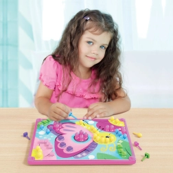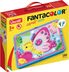 Quercetti Fantacolor Karty Príroda je kreatívna mozaika s úložným košom a 4 predtlačenými obrázkovými kartami pre zapichovanie kolíčkov. Táto mozaika podporuje rozvoj jemnej motoriky, koordinácie ruka-oko a kreatívneho myslenia.