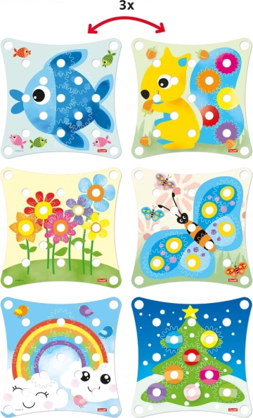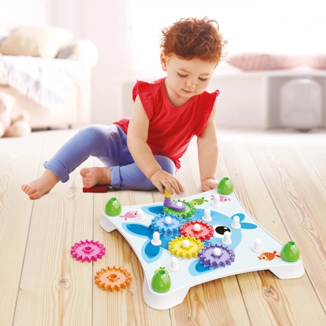 Usporiadajte kartu, zaradte prevody, otočte kľukou a sledujte veľkolepú reťazovú reakciu, ktorá prekvapí a poteší všetky deti. Dieťa sa naučí základné princípy mechaniky a pritom si užije veľa zábavy. Nerozbitné a bezpečné. Vyrobené z plastov špičkovej kvality. Obsah balenia: 1 biela základňa 1 kľuka 7 farebných prevodov 3 obojstranne ilustrované karty Hlavné vlastnosti: rozvíja jemnú motoriku, tvorivosť, fantáziu a logicko-kombinačné myslenie balenie obsahuje 13 dielikov pre deti od 2 rokov