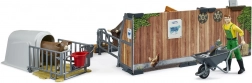 Umožnite deťom stať sa malými farmármi s touto detailnou farmárskou sadou. Sada zahŕňa dva kotce: jeden pre teľa a väčší pre kravu, oba vybavené napájadlom a kŕmidlom. Deti si užijú hranie s pohyblivou figúrkou farmára a realistickými nástrojmi, čo im priblíži každodenný život na farme.