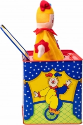 Otočte kľuku a sledujte, ako kašpárek vyskočí. Táto hračka je ideálna pre rozvoj jemnej motoriky.