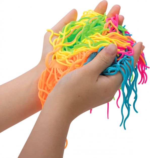 Stláčajte, naťahujte a viažte uzly – NEE DOH NOODLIES poskytujú silnú hmatovú stimuláciu, ktorá upokojuje a pomáha so sústredením pri učení aj práci.