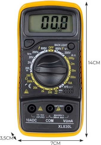 Univerzálny digitálny multimeter je navrhnutý pre širokú škálu elektrických meraní, čo z neho robí nepostrádateľný nástroj v každej dielni či pre domácich majstrov. Ponúka radu funkcií pre meranie napätia, prúdu a odporu, vrátane testovania diód a tranzistorov.