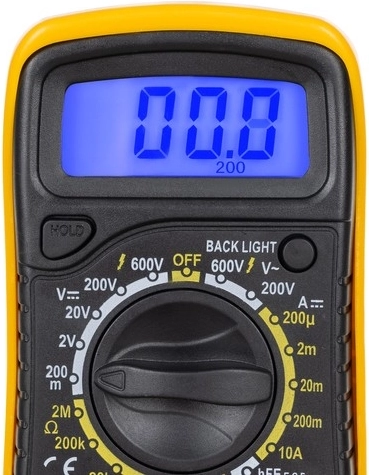 Multimeter umožňuje meranie striedavého a jednosmerného napätia, jednosmerného prúdu a odporu, poskytuje jasné a presné údaje.