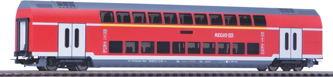Osobný dvojposchodový vagón DB Regio je detailne reprodukovaný model štvornápravového vozňa 1. a 2. triedy. Kombinuje precíznu výrobu s autentickým dizajnom nemeckého dopravcu DB Regio, ideálne pre súpravy s kompatibilnými vagónmi a lokomotívami.