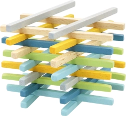 Hra je vyrobená z kombinácie masívneho dreva a odolnej preglejky a je ošetrená zdravotne nezávadnými farbami. Balenie obsahuje figúrku slona a 36 hracích tyčiniek, takže môžete začať hrať ihneď po rozbalení. Ideálna voľba pre deti od 3 rokov, škôlky aj domáce hranie.