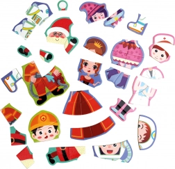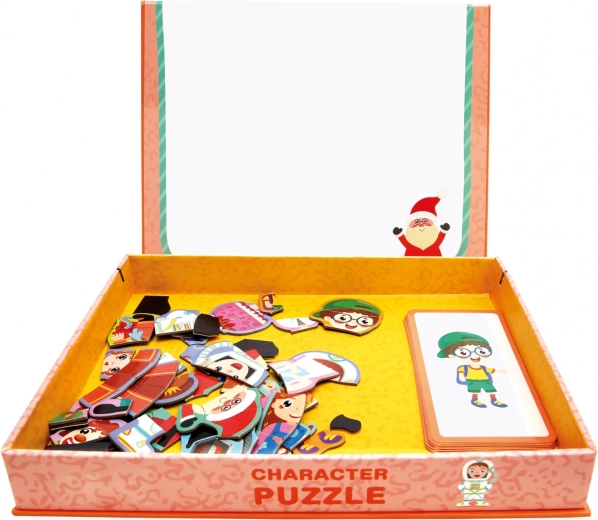 Magnetická skladačka postavičiek prináša deťom dvojakú zábavu: môžu skladať podľa predlôh, alebo nechať pracovať svoju fantáziu a vytvárať originálne kombinácie. Magnetické dieliky pevne držia na veku krabičky, takže sa s nimi pohodlne manipuluje doma aj na cestách.
