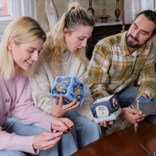 Premeňte odovzdanie darčeka na nezabudnuteľný zážitok. Tajomná krabička ESCAPEWELT je štýlová skladačka, ktorú po zostavení uzamknete trojmiestnym kódom a riešiteľovi pripravíte sériu logických indícií na štyroch kartách. Vďaka farebným samolepkám, symbolom a smerovým nápovedám si sami nastavíte náročnosť aj atmosféru hádanky.
