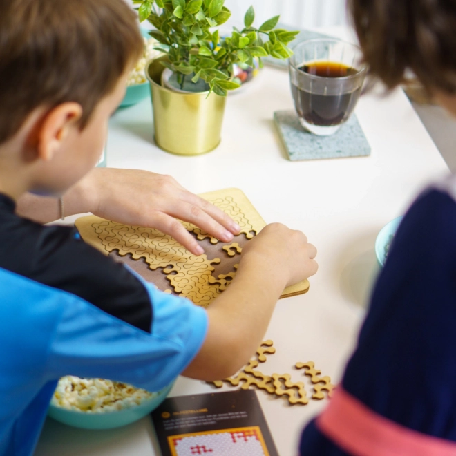 Toto dizajnové drevené puzzle je výzvou pre každého, kto miluje múdre hlavolamy. Každý krok k vyriešeniu je o niečo náročnejší a cesta k dokončeniu vyžaduje premyslenú stratégiu, trpezlivosť a pozorné oko. Vďaka pevnému materiálu a presnému laserovému výrezu dieliky perfektne lícujú a skladanie je plynulé a príjemné.
