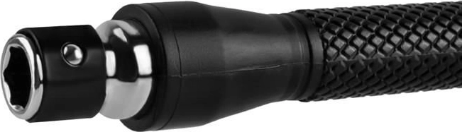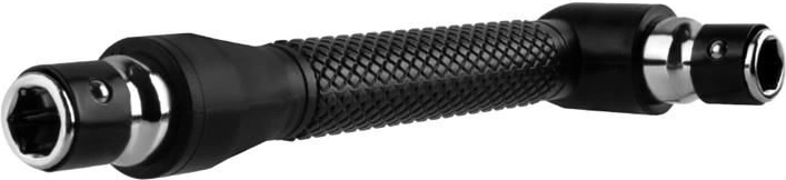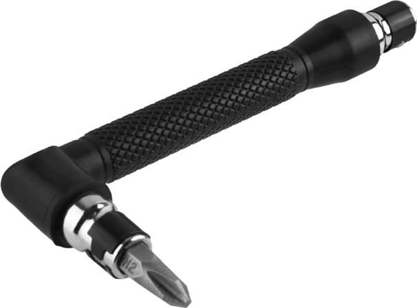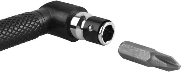 Šesťhranný držiak bitov umožňuje skrutkovanie alebo odskrutkovanie skrutiek pod uhlom 90°, vďaka protišmykovej konštrukcii umožňuje bezpečné uchopenie aj pri práci nad hlavou na neprístupných miestach, kam iné náradie ťažko dosiahne.