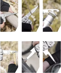 Kompaktný a odolný multitool TRIZAND ponúka 13 nástrojov v jednom a navyše sadu 11 bitov s adaptérom. Ideálny na kempovanie, turistiku, rybolov, dielňu aj záhradu. Vďaka nerezovej oceli, praktickému púzdru na opasok a kompaktným rozmerom máte spoľahlivého pomocníka vždy po ruke.