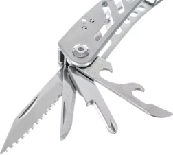 - 13 nástrojov v tele multitoolu – nôž, pílový plátok, kliešte/kombinované kliešte, štiepačky, otvárač fliaš a konzerv, skrutkovač a ďalšie.