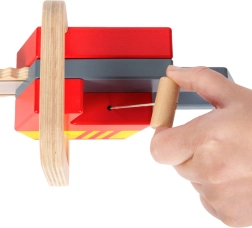 Objavte robustnú drevenú motorovú pílu s hasičskou tematikou, ktorá deťom ponúkne realistickú hru na hasičov. Vďaka veľkej ergonomickej rukoväti sa skvele drží v detských rukách a naťahovacia štartovacia šnúrka so zvukom a vibráciami umocní zážitok z hry. Perfektný doplnok k hasičskému batohu pre malých záchranárov.