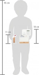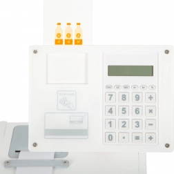Integrovaná kalkulačka v otočnom monitore, trhacia rola účteniek a slot na kartu umožnia deťom zažiť reálny priebeh nákupu – od načítania tovaru po tlač účtenky.